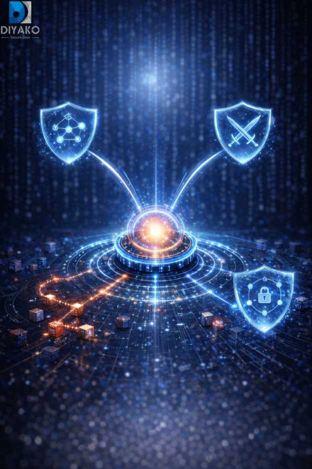 • دایرهی مرکزی لوگو بازتابدهندهی جهان دیجیتال، زیرساختهای فناوری اطلاعات و ارتباطات (ICT) و خدمات فناوری اطلاعات (IT) است؛ همان محیطی که مأموریت ما حفاظت، پایش، تابآورسازی و توانمندسازی آن است